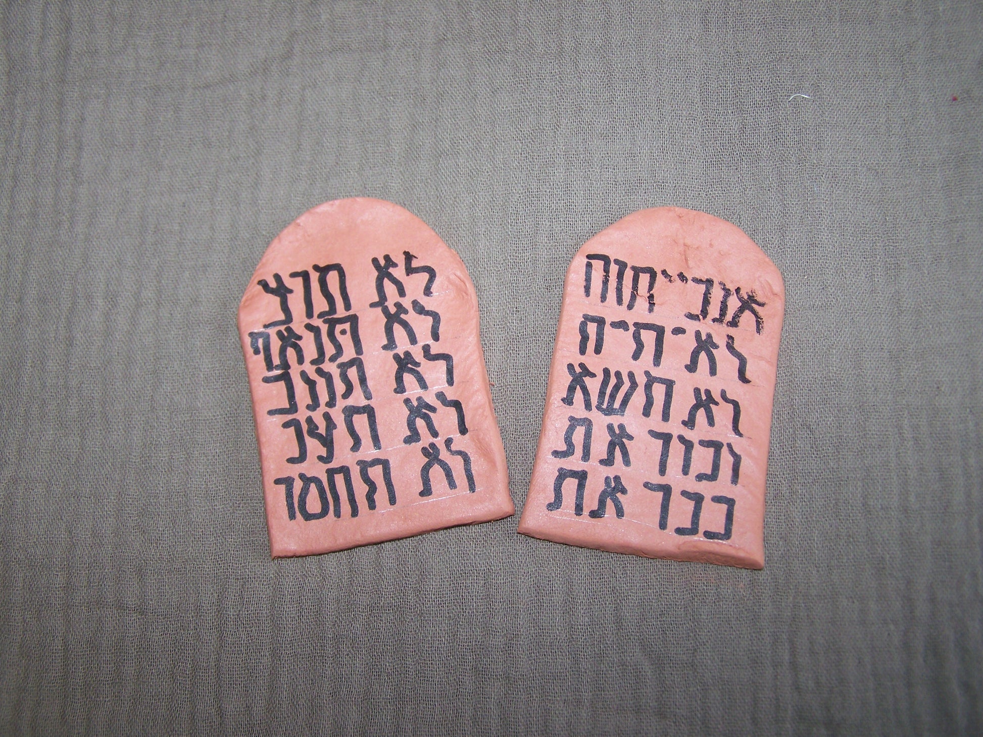 Zwei handgefertigte Gesetzestafeln aus Ton.