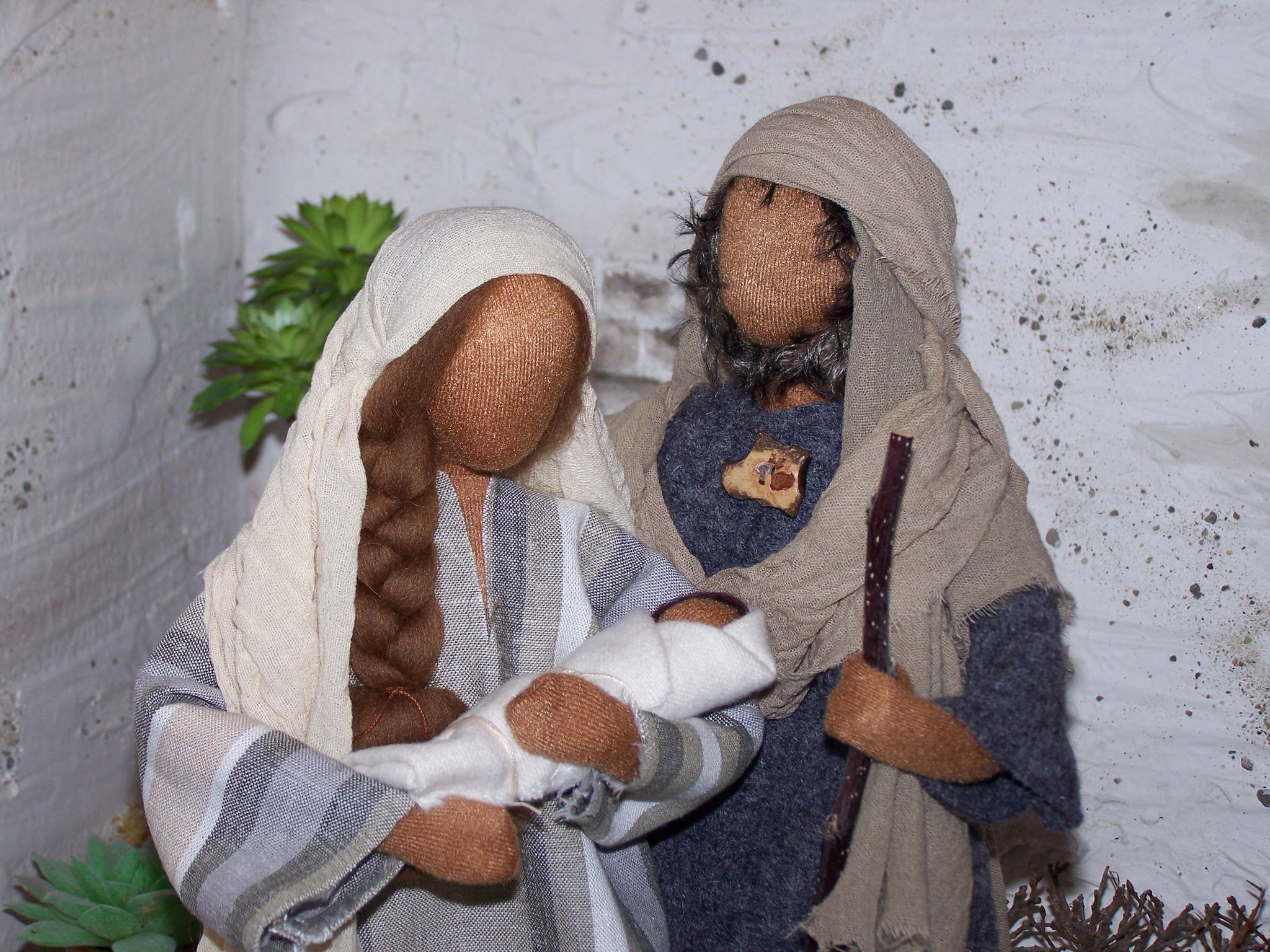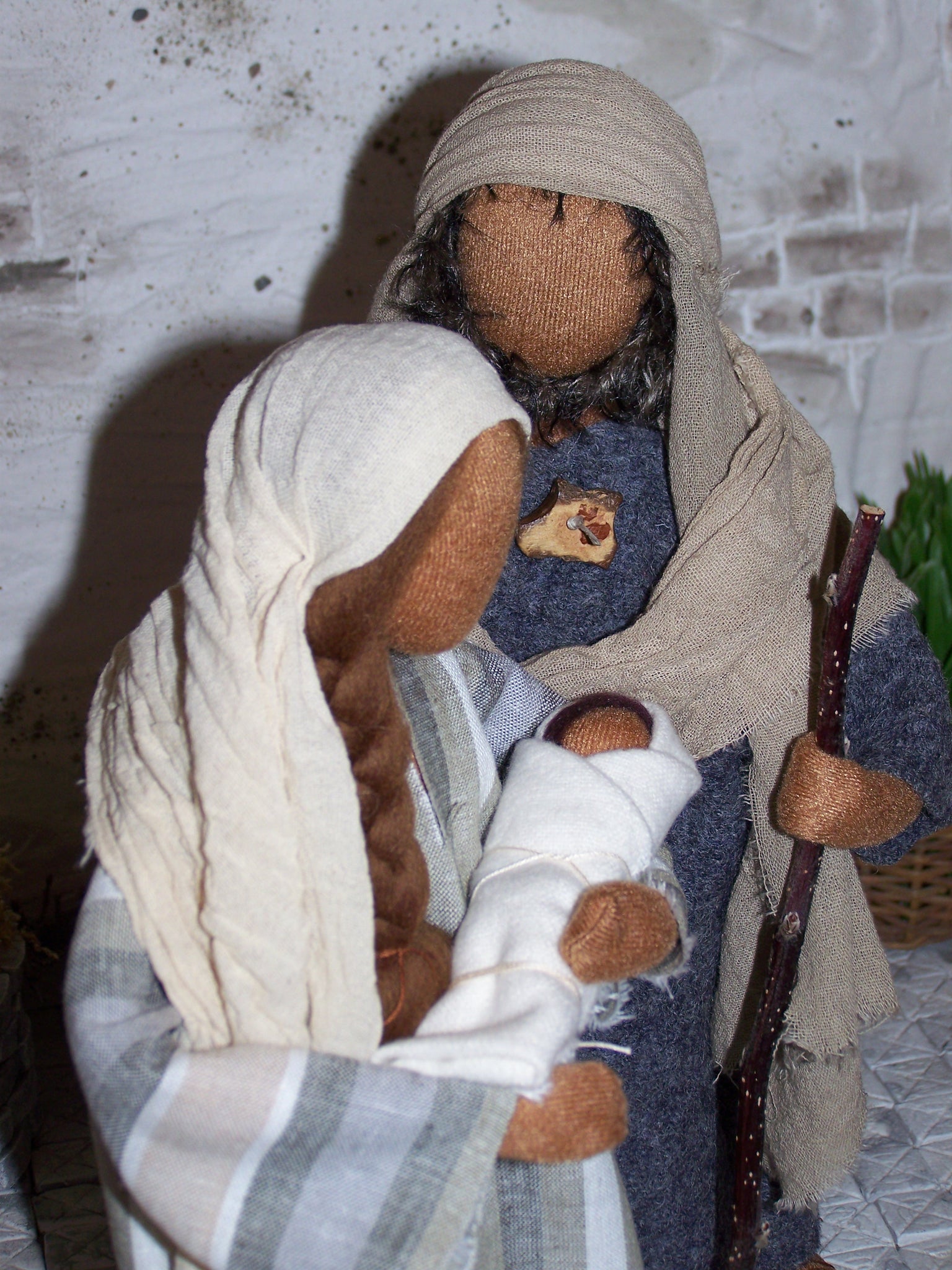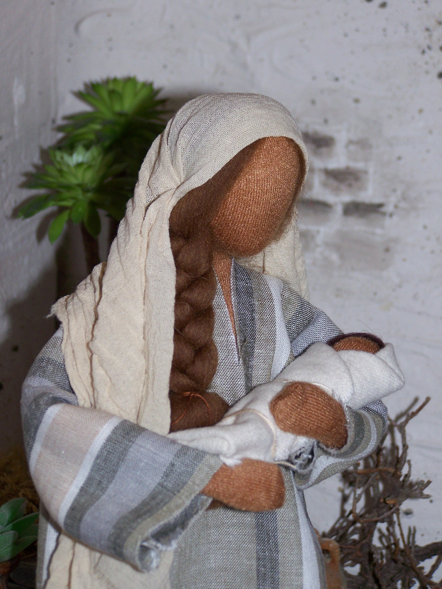 Maria hält das als Bündel gefertigte Jesuskind in den Armen.